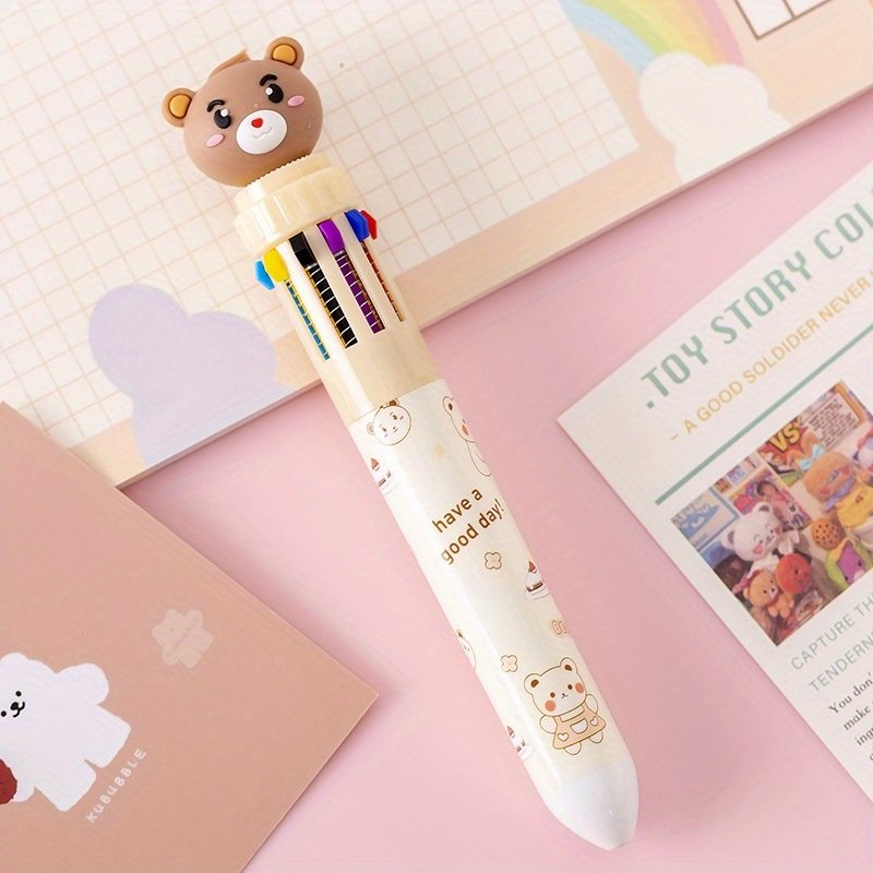 10-color Cartoon Ballpoint Pen Bear Press Color Pen Student Stationery Marker Pen Holiday Small Gift