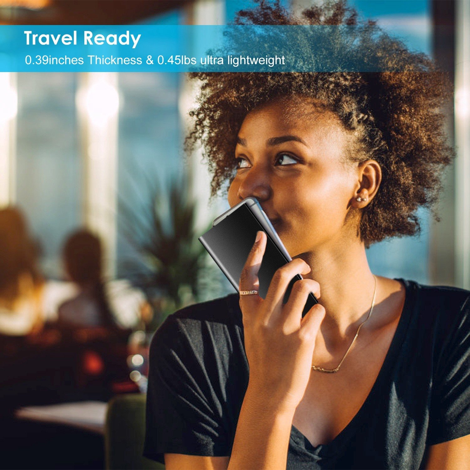 **ULTRA-THIN & BUT STURDY*:Possibly the thinnest power bank compressed into 1cm /0.39inches thickness. Chic business style with anti-oxidation treatment aluminum alloy materials,durable and heat- abrasion resistant. Our power bank is optimal for travelling and working. Ultra-slim design is easy to hold.