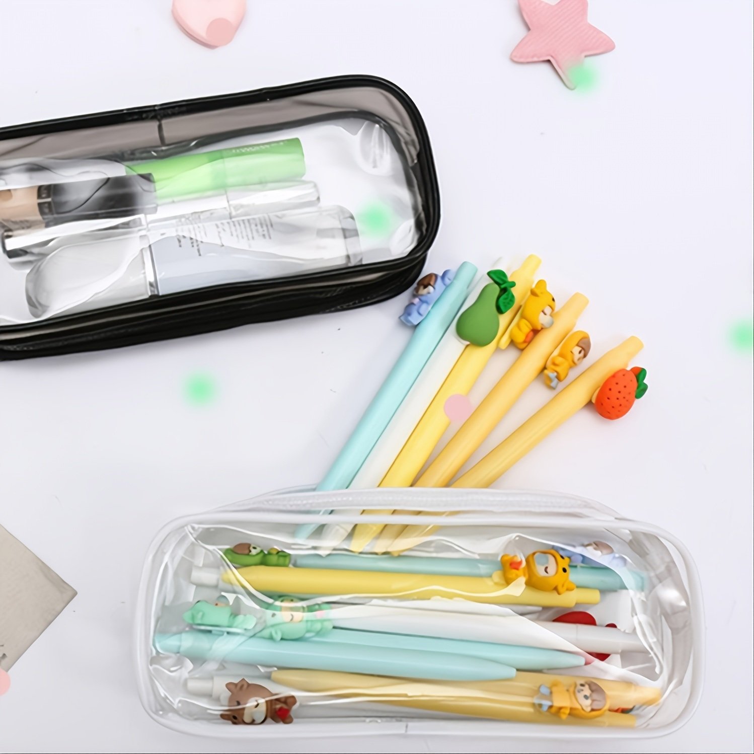 Home > 2pcs Stylish Black & White Clear PVC Zipper Pencil Bag - Perfect for Toiletries, Exam Supplies, Travel & Makeup