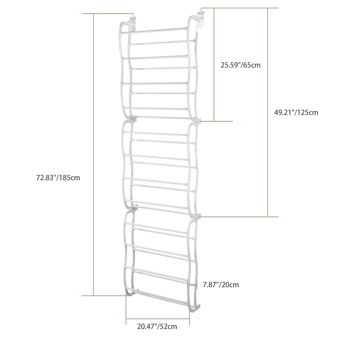 ** EASY TO ASSEMBLE*:Easily assembled into a 12-shelve shoe rack; no tools needed and is perfectly solid once it’s on the door. No worry about shoes falling off; rack coming apart; etc.(Note:Using the coming screws to keep the shoe rack in place is needed to avoid the shoes falling off from the rack.)