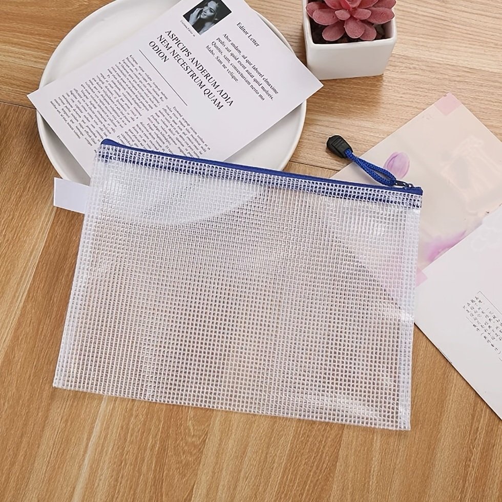 5pcs A5 Office Mesh Waterproof File Bag With Zipper Creative Students Stationery Pen Bag Office Transparent Information Bag Bill Storage Bag
