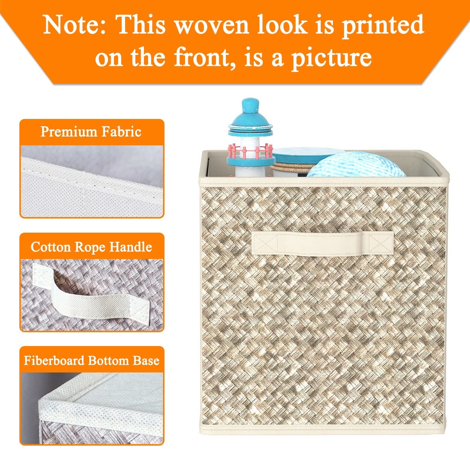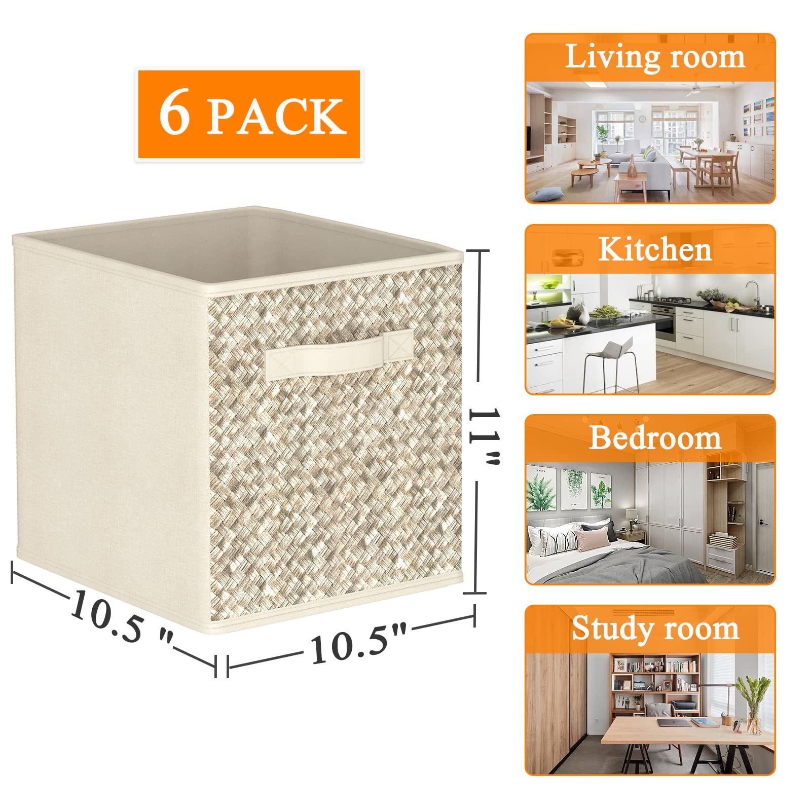 Dimension: 11 inch cube storage bin, Set of 6 baskets, the size of each small fabric basket is 10.5inch(L) x 10.5inch (W) x 11inch (H). Perfect for use as empty gift baskets. These foldable storage bins for a closet organization can meet many storage needs while keeping clothes and household items in the orderColor:Beige - 10.5x10.5x11'' - 6 Pack