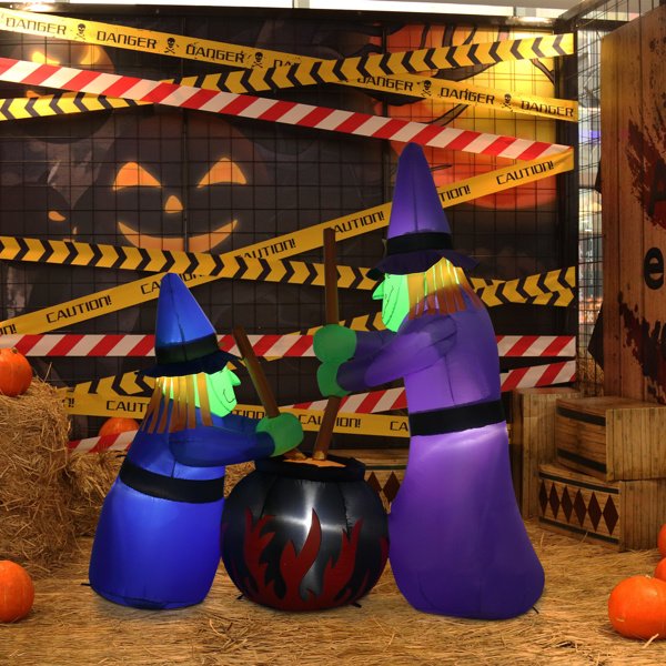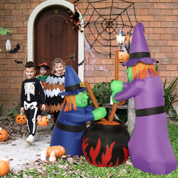 6ft Garden 5pcs LED String Lights Two Witches with Pots Inflatable Halloween Decoration
