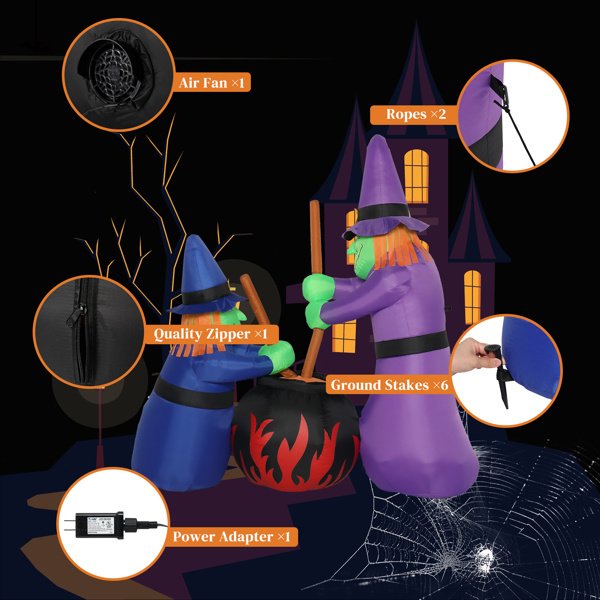 Home > 6ft Garden 5pcs LED String Lights Two Witches with Pots Inflatable Halloween Decoration