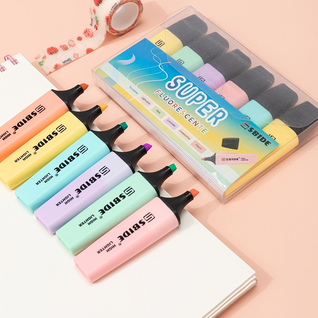 6pcs Macron Color Fluorescent Markers For Marking Key Points For Study And Office