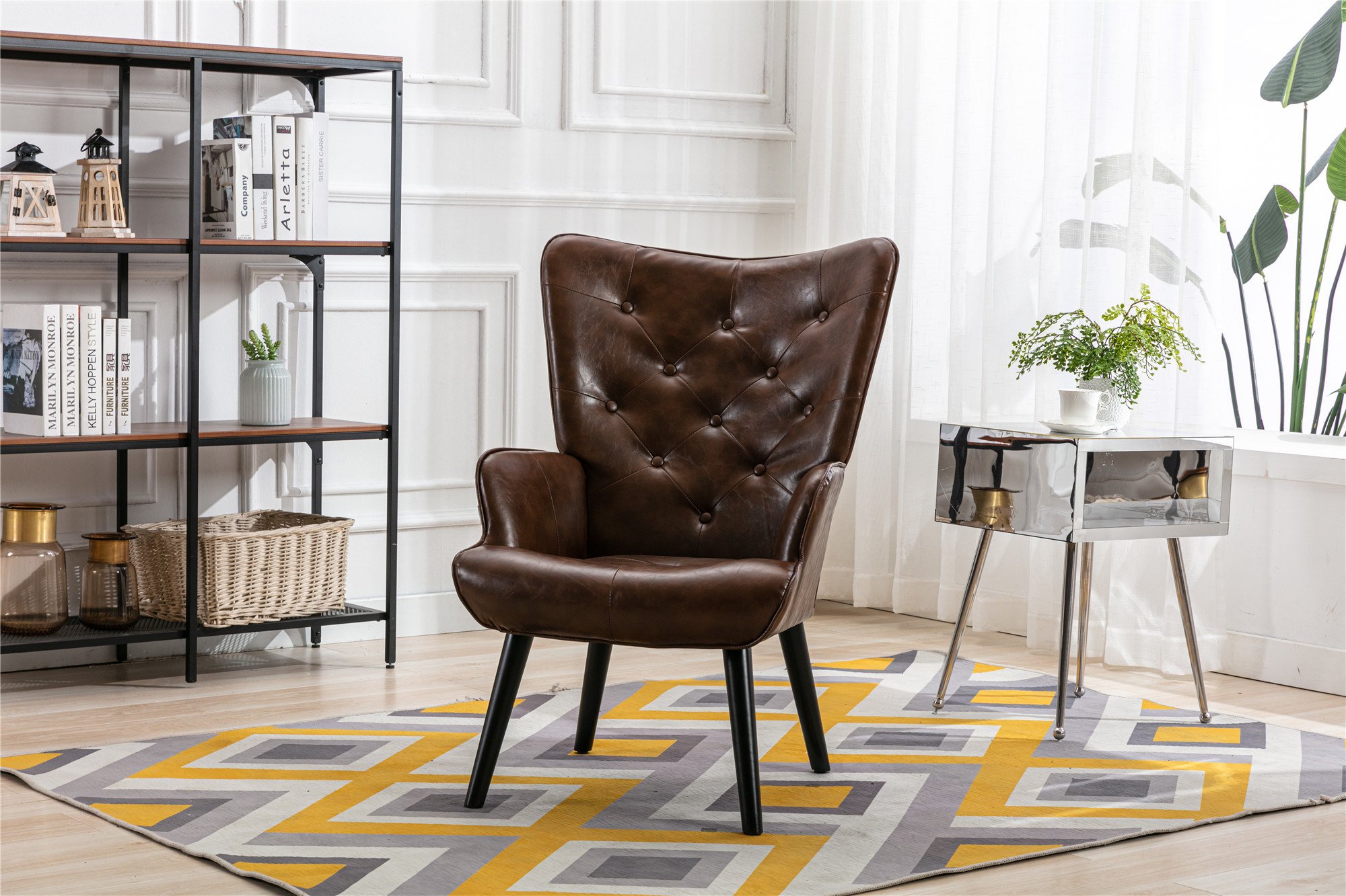 Accent chair Living Room/Bed Room; Modern Leisure Chair Weights & Dimensions&DescriptionPerfect for rounding out your home with a handy perch; an accent chair like this is a great option curling up with aGood book or settling in for a TV binge; while also lending your space an on-trend look. Crafted from solid wood; and manufactured wood frame. Round arms; a camelback; and button tufting round this piece out with eye-catching mid-century-inspired touches