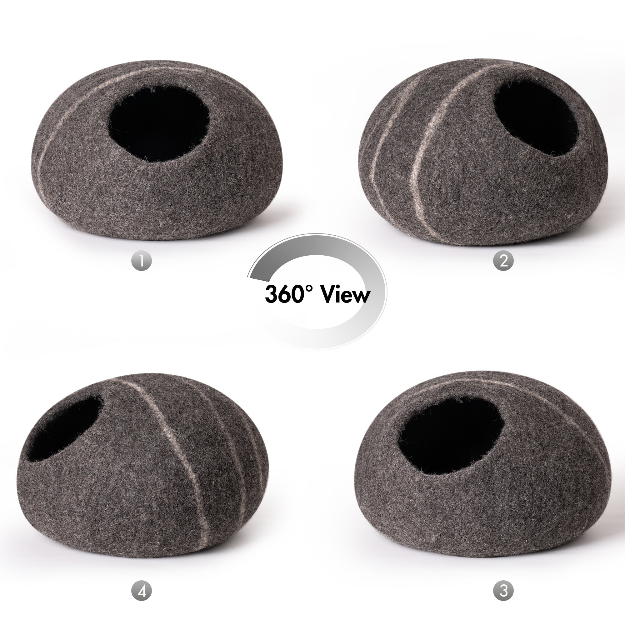 OriginalDesign-WoolCatCaveBedwithCatToysProductdescription: 1.Madeofnaturalwool.Softandcomfortable; friendlytotheenvironment.2.Simulatesthefeelingofacave; makingyourfurchildfeelsafeandcomfortable.3.Thepatterndesignisinspiredbythecolorofthecatitself; whichcanbeperfectlyintegratedwithhomedecoration.4.Amousetoyisincludedwiththecatlitter; whichcanmakethekittenplayhappily.5.easyaccessforcats.Itcanholdupto15lbs; Suitableforkittiesormediumcat(s).6.Whenusedasacatbed; catscanlie; relaxandplayonthetop; justlikelyingintheirmother'shug.Whenusedasacatcave; providingprivatespaceforyourcattohide; sleepandrestinside.suitableforallseasons.Product Dimensions