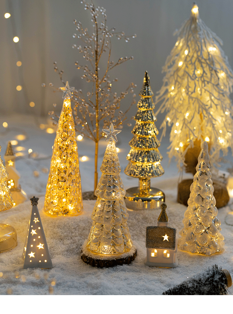 Christmas Decoration Glass Tree Home Desktop Decoration Light Up Small Night Light Christmas Gifts