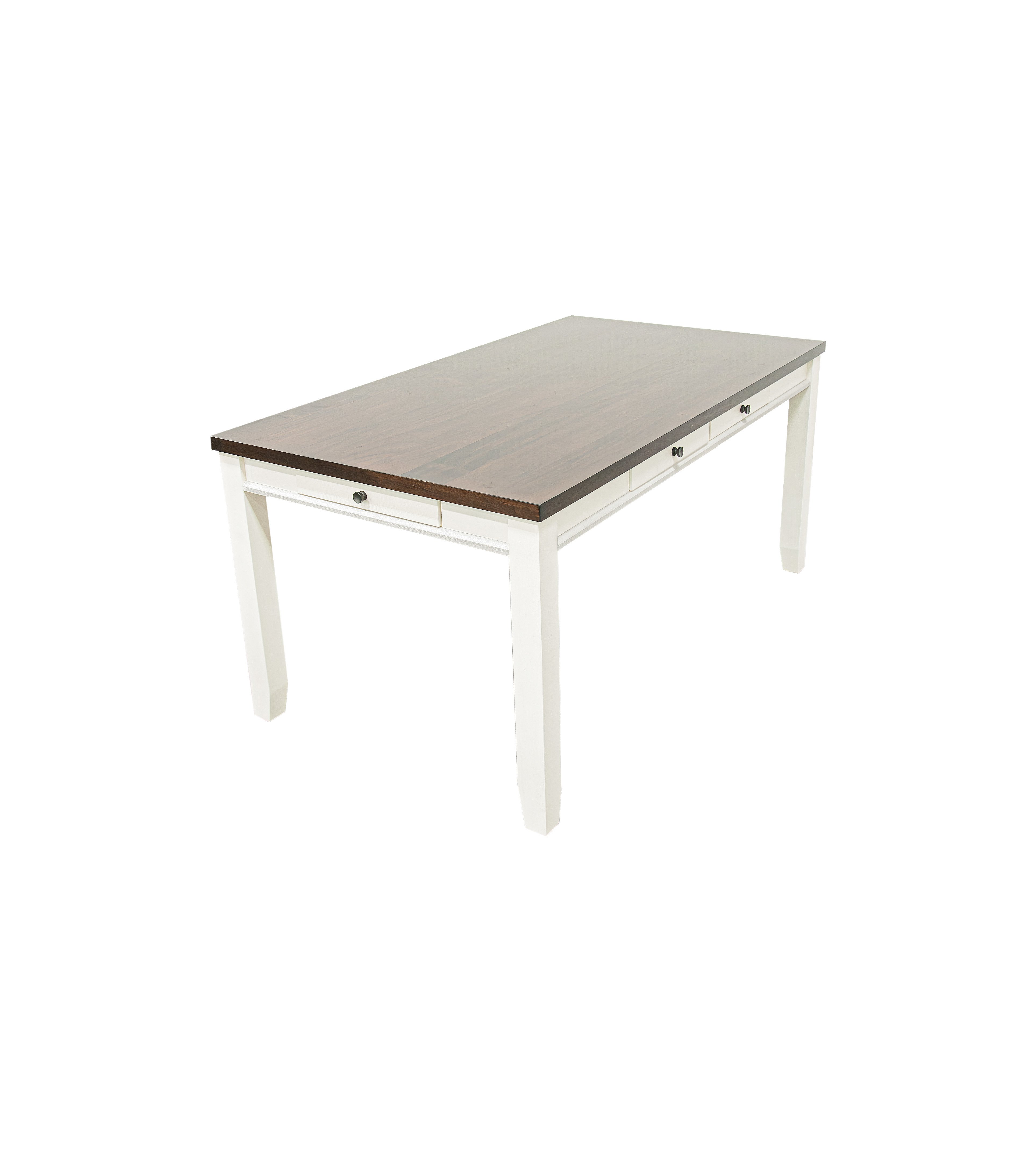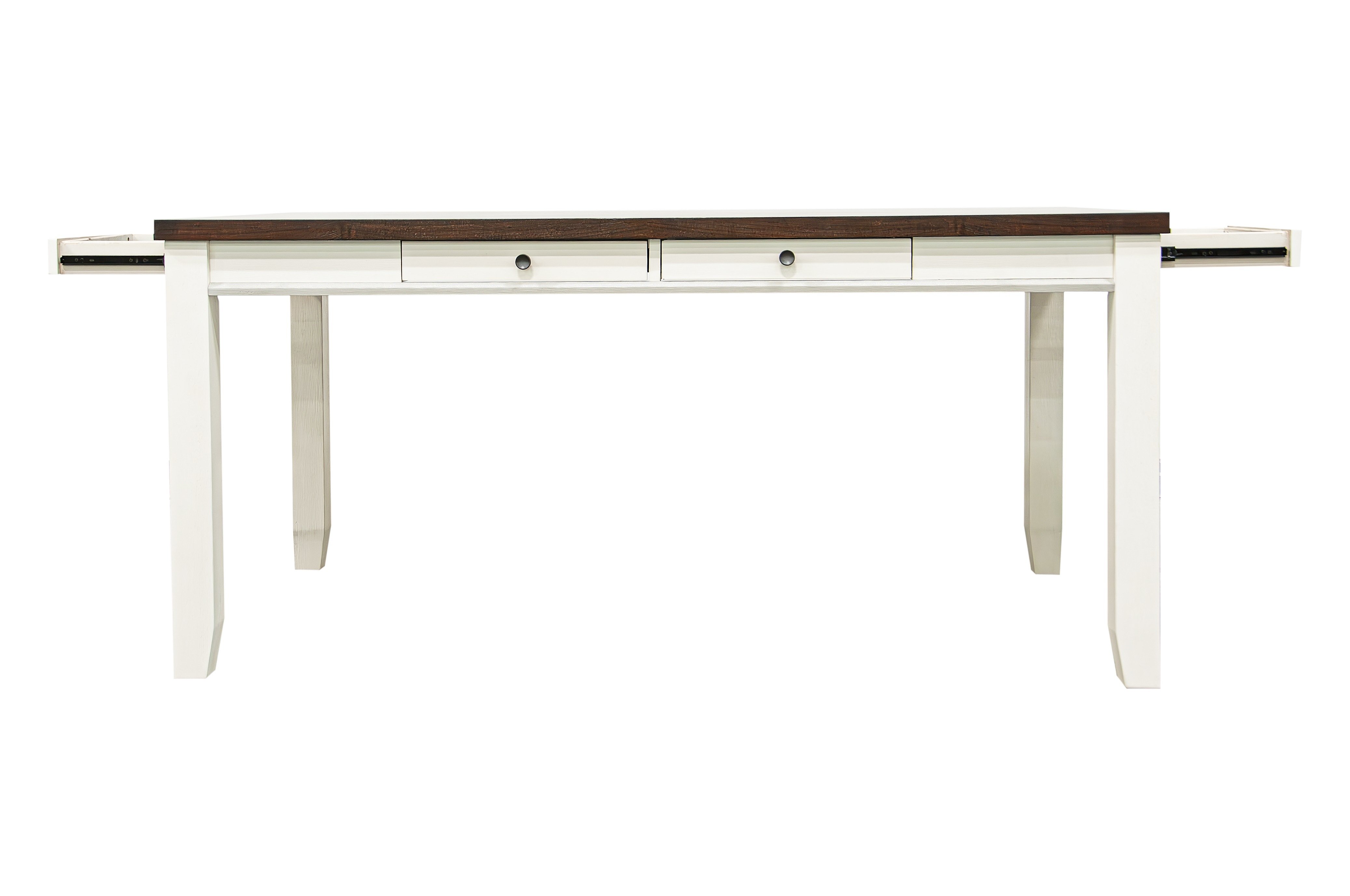 Description:Product DescriptionDescription:- This two-tone wooden Dinning Table brings the classic look to a modern farmhouse style. Store away any extra silverware and placemats with the featured pull-out drawers. Ready to seat up to 6 people, mix with the matching Dining Chair or bench (Sold Separately). Product Dimensions:- Table : 64" x 36" x 30"H Simple assembly required.