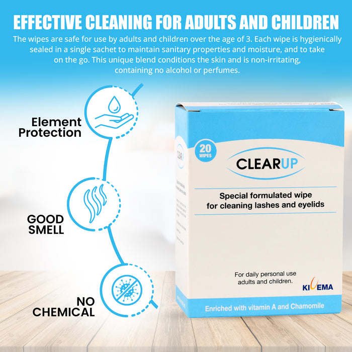 The Kivema ClearUp eye wipes for dry eyes are a hygienic and great way to freshen up your eyes. The wipes are excellent for removing the grime and dirt that builds up during the day. The cleansing formula is safe for all types of eyes and does not irritate the skin. The #1 rated eye cleaning wipes have a mix of soothing and refreshing ingredients; our wipes will be perfect for your tired eyes. They'll leave you feeling rejuvenated! Get yours now.
