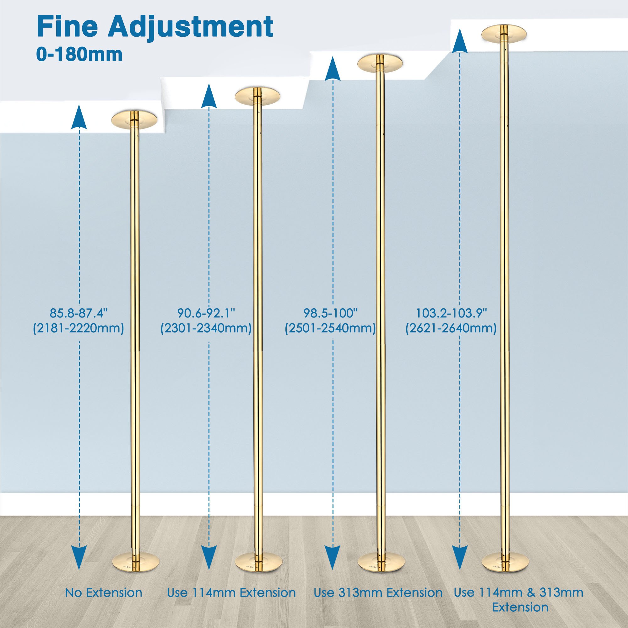 - Simple & Flexible Installation - Comes with a 9.25ft dancing pole with 2 extension poles; ensuring ease of installation and dismantling without any drilling required; thanks to its adjustable height designed for different ceiling heights