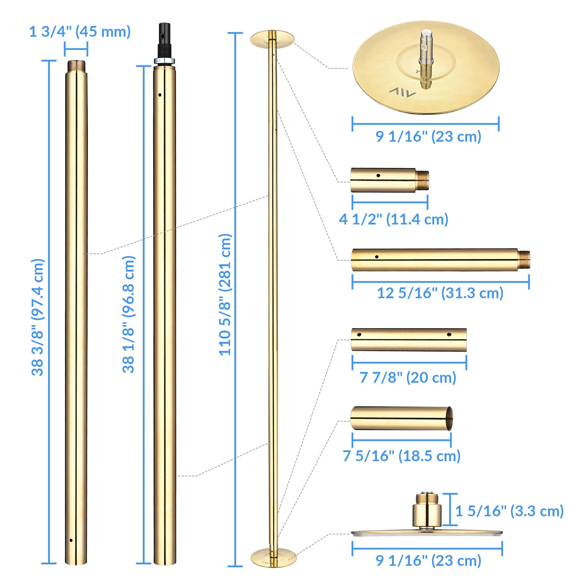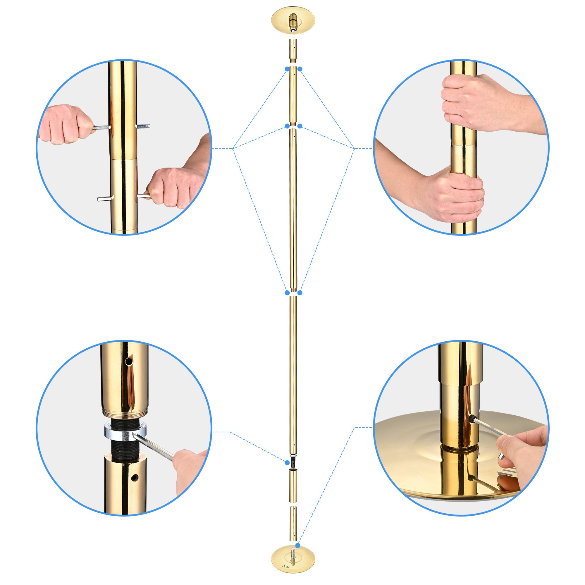 - Dazzling Color - This Static Spinning Dancing Pole Kit comes with a reflective golden appearance which shines under the light; creating a dazzling stage effect; suitable for clubs; discos or parties; ideal for practicing or performing on stage or on cameraThis Static Spinning Dancing Pole Kit comes with a reflective golden appearance which shines under the light; creating a dazzling stage effect; suitable for clubs; discos or parties; ideal for practicing or performing on stage or on camera