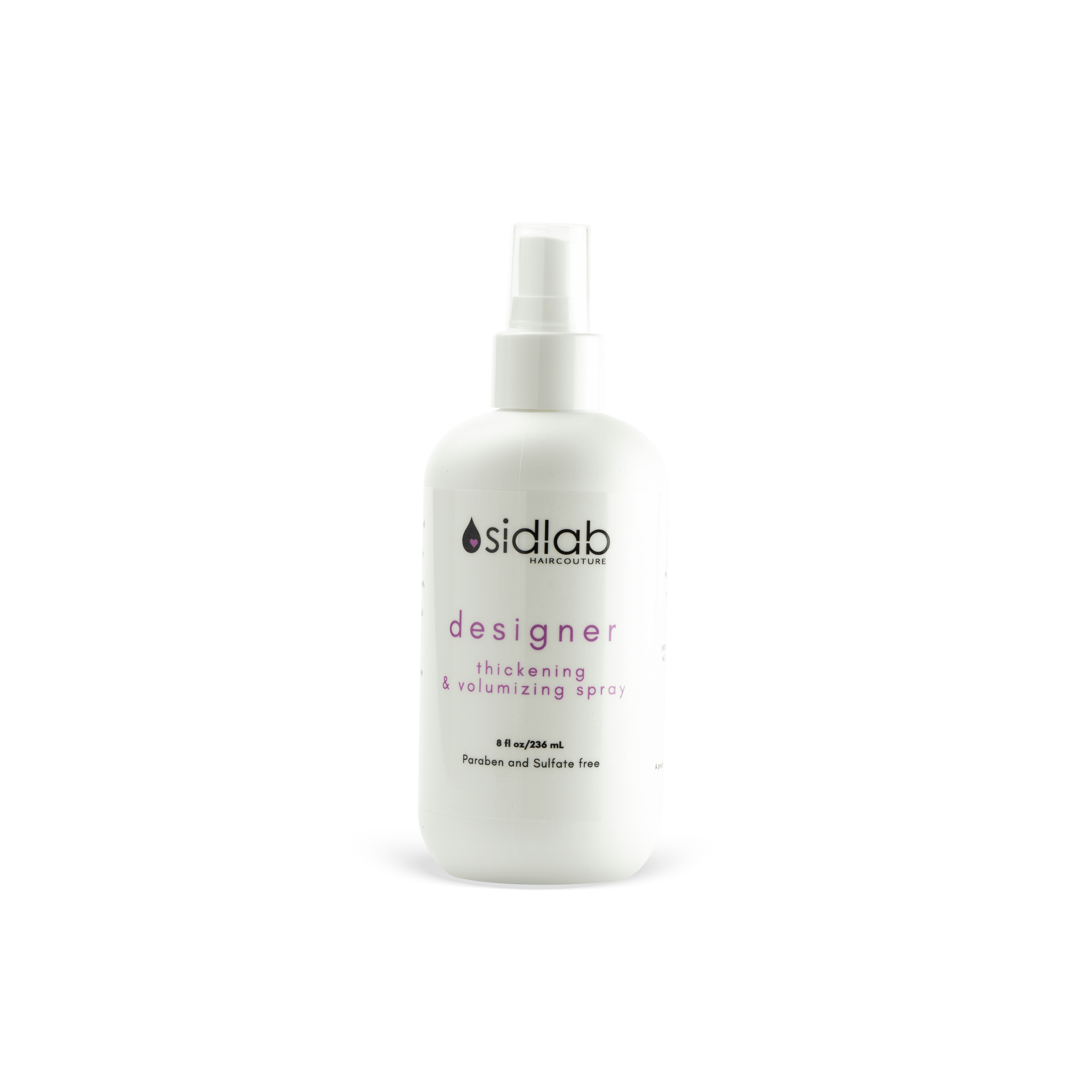 Thickening and volumizing spray adds control and shine to all hair types. Using Pro-vitamin B5; keratin amino acids; and wheat protein this couture styling spray adds impressive volume to all hair types; while allantoin and natural preservatives nourish the hair and soothe the scalp. designer is paraben and alcohol free. "volume by design"Cocktail with other Sidlab products to get a customized "tailored" product for your "hair formula".