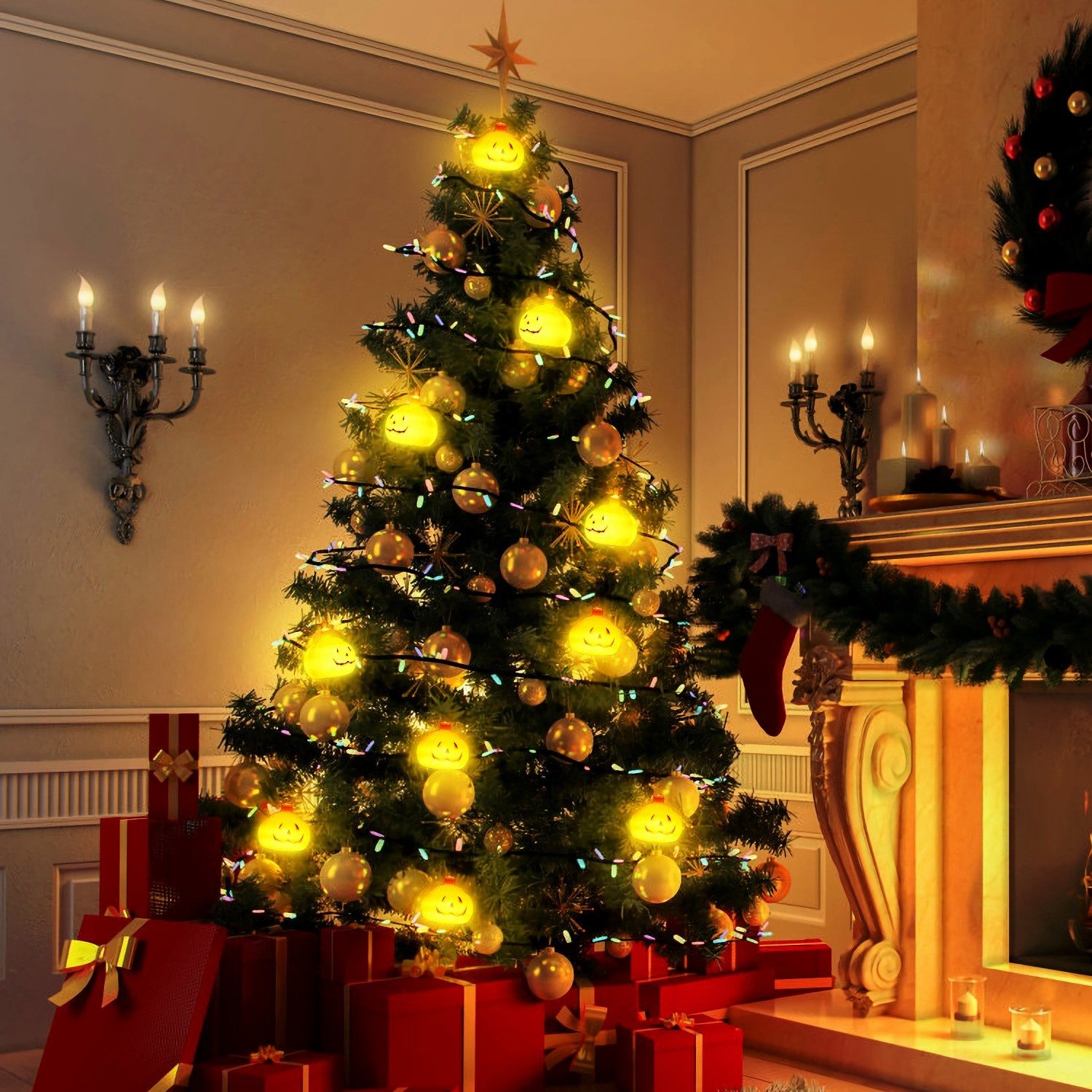 *[Bright & Cute]- This Pumpkin string lights contain 10 cute 3D Led Lights; each having a cute little classic grimace and shinning brightly in a warm white color through the outer little orange pumpkin casing; which is made of PS material; has high transparency and over 90% light transmittance. Thus it would give out more like an orange warm color rather than a plain yellow color.