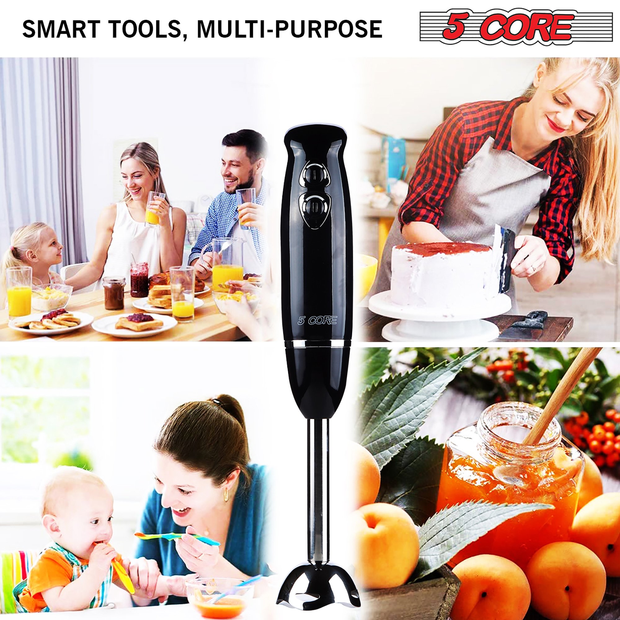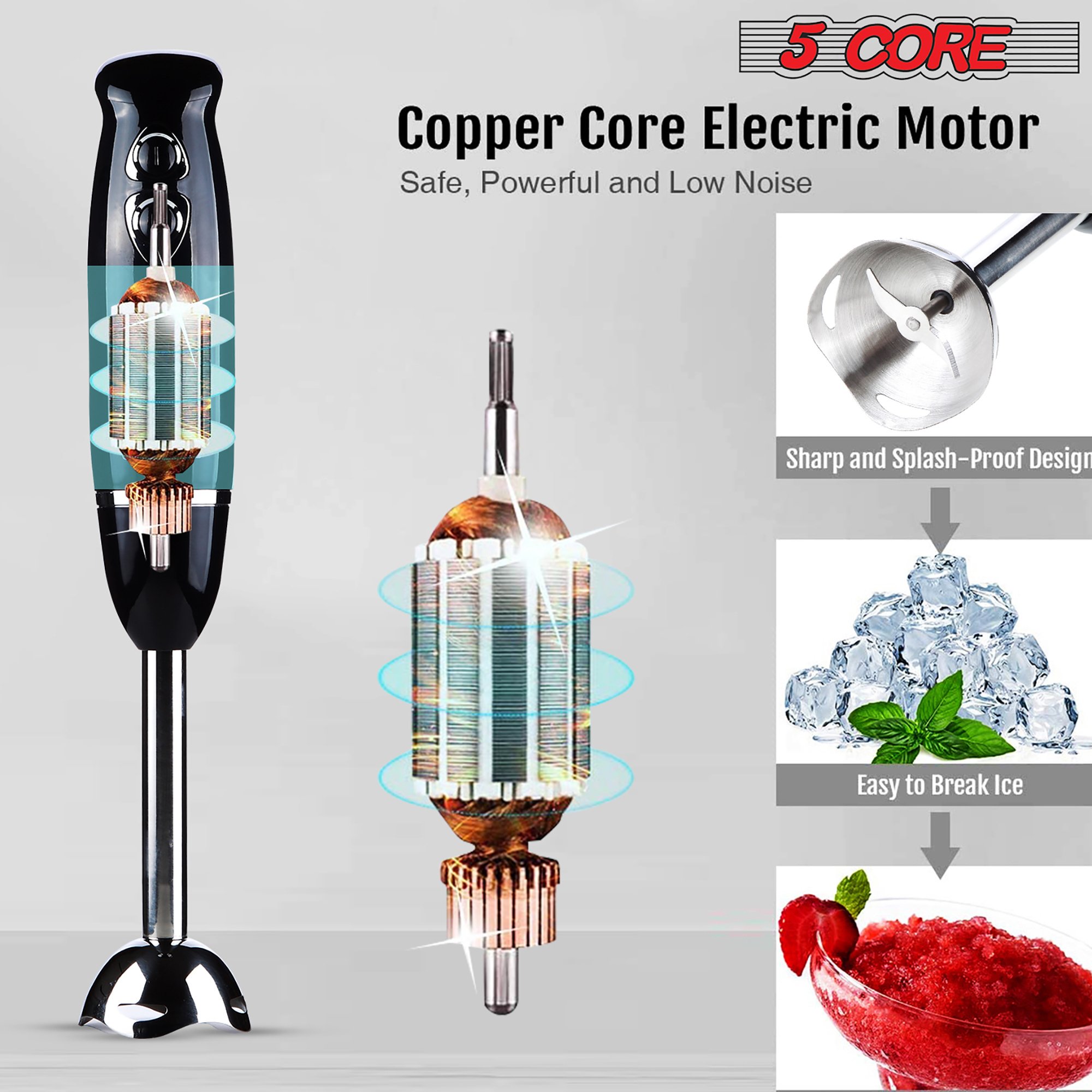 5 Core Handheld Blender, Electric Hand Blender 500W, Immersion Hand Held Blender Stick with Food Grade Stainless Steel Blades for Perfect for Smoothies, Puree Baby Food & Soup