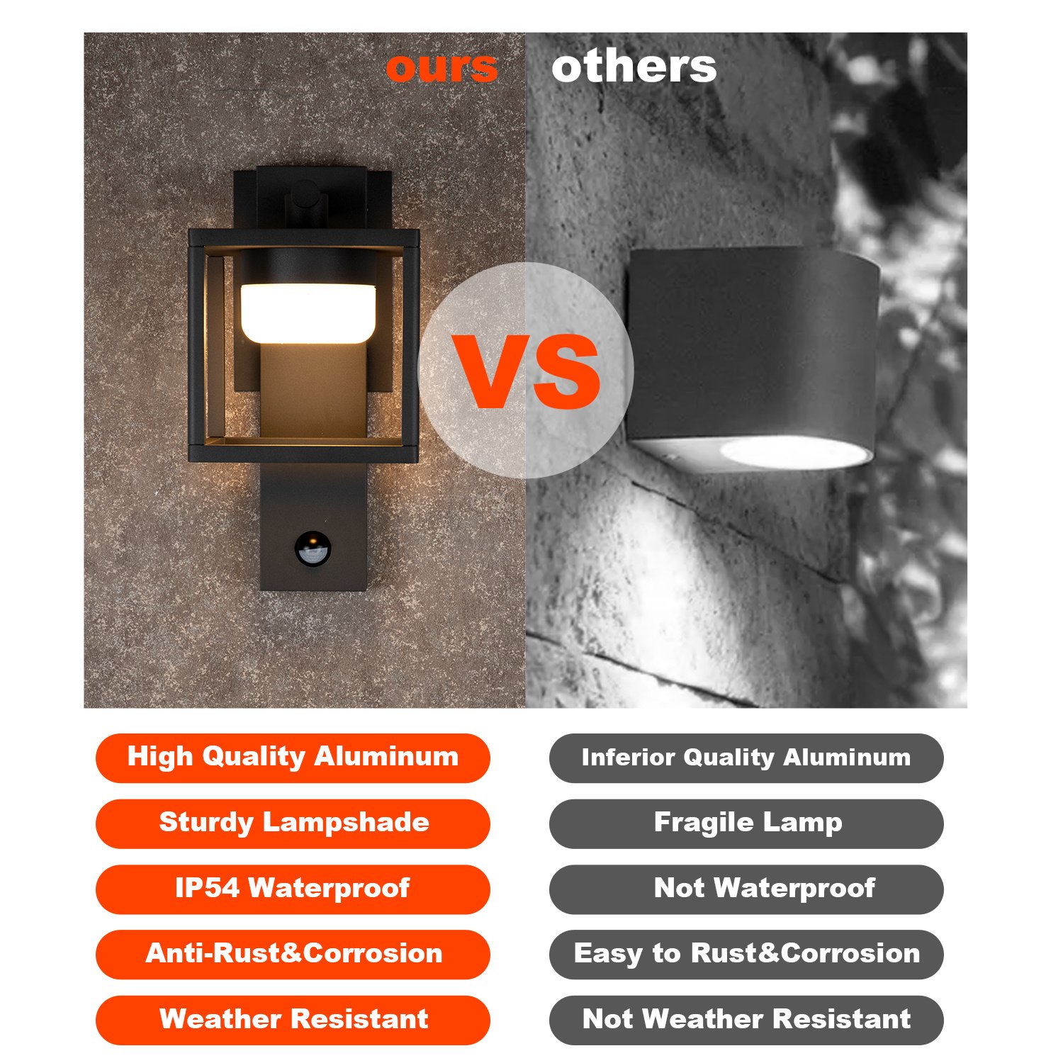 3.Weather Resistant & Durable:Our outdoor wall sconce is IP44 grade waterproof and durable enough to withstand any weather changes, The outdoor wall lantern is constructed with high quality aluminum which effectively prevent from rustiness or corrosion, ideal for any outdoor environment . Even it is rain, snow, ultra-high or low temperatures, this outdoor wall lamp will always remain bright and new. Ideal for entryway, doorway, foyer, corridor, balcony, patio and porch.