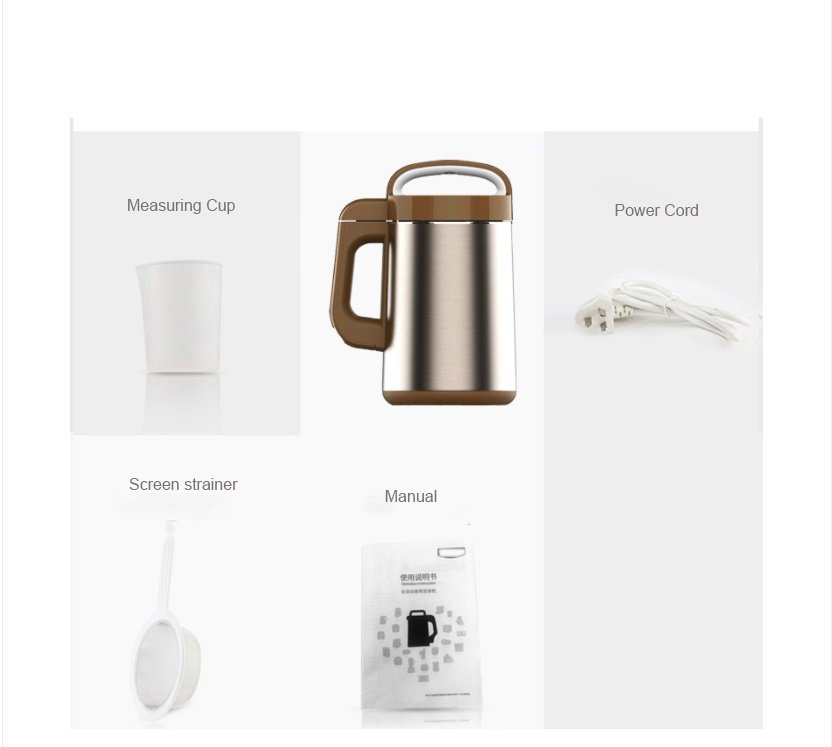 1. It has 8 functions, one-key operation, soy milk, rice cereal, fruit juice, nutritious porridge, etc.2. It has a stainless steel grinding knife, which can quickly smash and cut, repeatedly grind, soy milk is fine and nutritious.3. It adopts intelligent temperature control technology, chassis heating, simmering, soy milk is thick and nutritious, and does not stick to the pot.4. It has a 304 food-grade stainless steel head and cup inner wall, seamless inner liner, no dirt, easy to clean.5. Its double-layered cup body, heat preservation, anti-scalding and noise reduction, safe to use and no noise.6. It has an anti-overflow electrode device, which automatically cuts off the power to prevent the soy milk from overflowing without manual supervision.7. It has a capacity of 1.2L, suitable for a family of 2-3 people, it tastes good without wasting.8. 120V North American voltage, free shipping to 48 states in the United States.