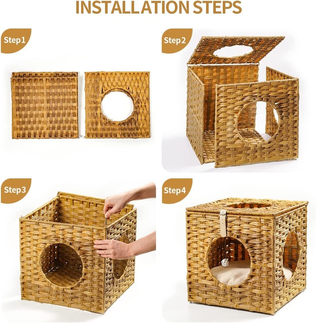 [Easy to Assemble & Clean] This hand-woven wicker cat bed adopts detachable design for easy cleaning. With simple assembly instructions; it can be set up in 10 minutes. It can also be disassembled to store when not in use to save space.