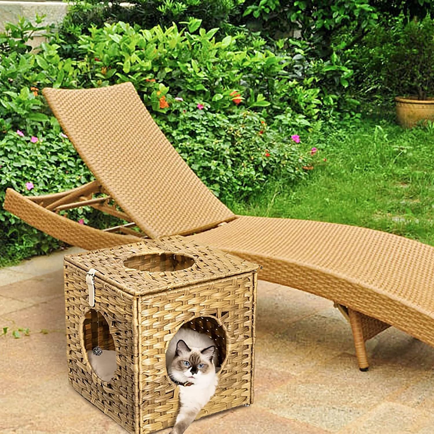 [Easy to Set Up]Our wicker cat bed adopts detachable design for easy cleaning. It can be disassembled to store when not in use to save space.Quality of our cat house constructed with simple assembly instructions will set up in 10 minutes.
