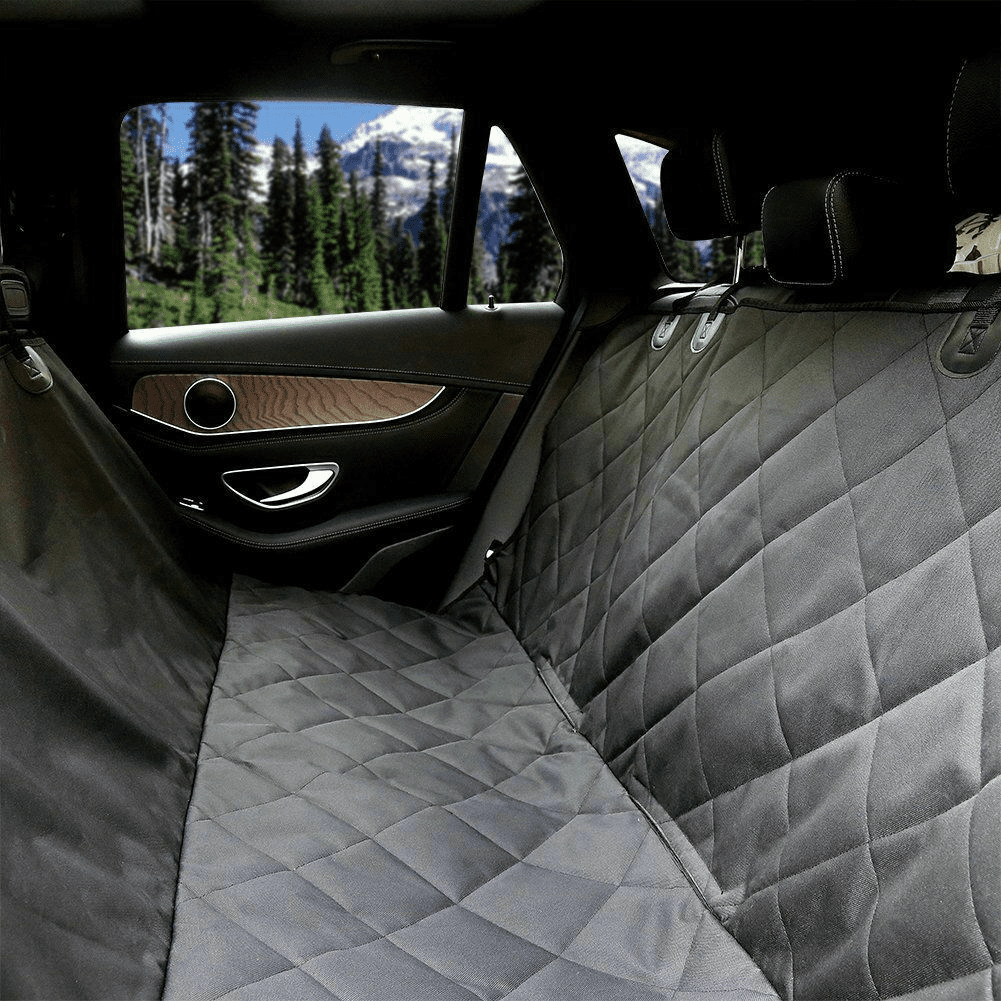 FeaturesHeavy Duty Material:This rugged pet seat cover is made from 4 layers of fabrics: thick water-resistant oxford fabric; cotton layer; 100% waterproof polyester; and PVC non-slip soft rubber. Four layers of protection to keep your car safe from pet claws; stains and liquids.Rugged Protection:The cover is securely anchored in the back seat with included buckle making sure it stays still and neat even during quick turns and speed bumps.Universal Fitting:Measuring approximately 54x58 inches; it is perfect size for most cars and family SUVs. The velcro opening lets the seat belt thread through; then the velcro will stick together so that drool or stains can't penetrate.Easy to install; Easier to clean:The cover takes two seconds to unbuckle and shake off sand; dirt and debris. You can use a wet cloth to spot clean; hand wash; machine wash and vacuum cover.