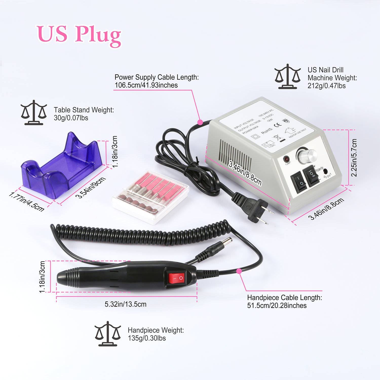 US Nail Drill Machine Weight: 212g/0.47lbs
