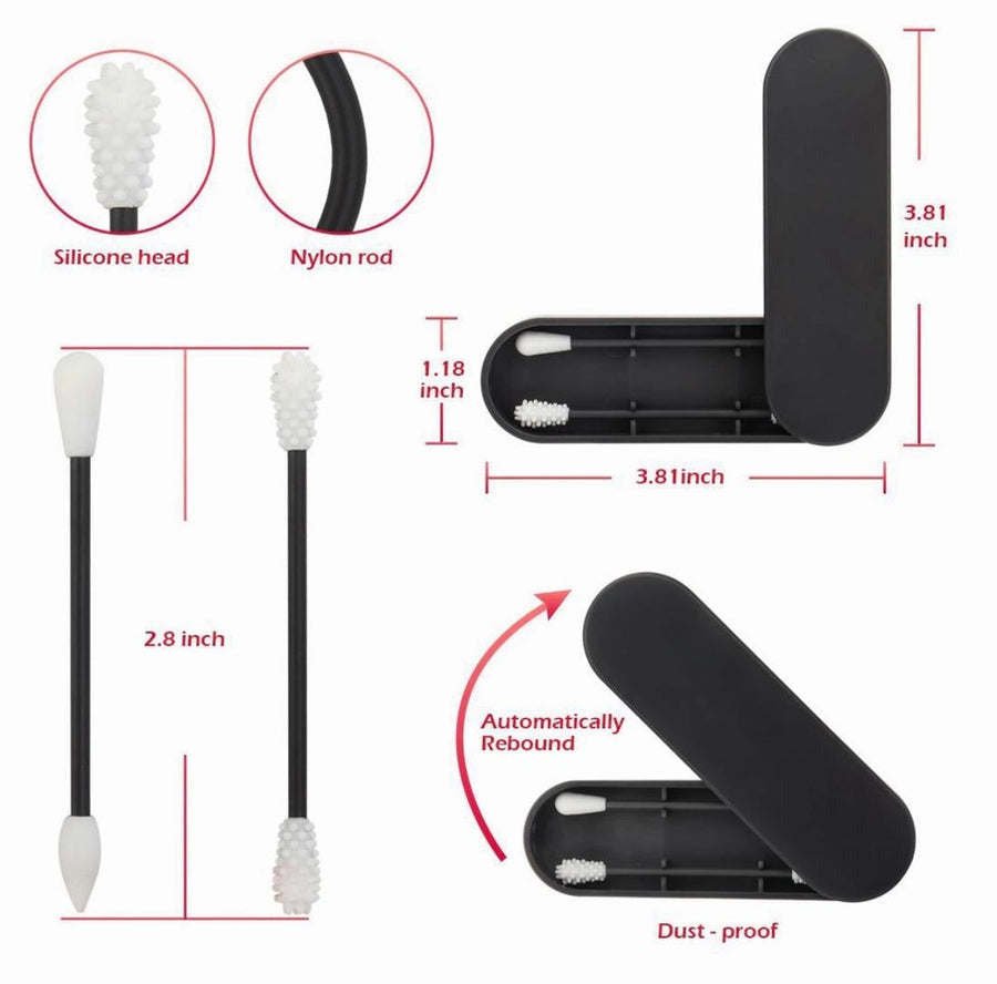 Reduce waste by replacing disposable traditional cotton swabs with reusable; washable; safe silicone swabs that work effectively!Swabs are soft and flexible; suitable for sensitive body parts. Essential in your reusable accessories collection!Easy to carry. Our amazing reusable swabs are very easy to clean just with some water and little soap.The two-version pack serves multipurpose uses like ear cleaning and all beauty requirements like makeup and touch-up.Change today to our reusable swabs that really work while eliminating waste!2-pack reusable swabs; multipurpose; facilitate ear cleaning while also being great for makeup and touch-up.Eco-friendly by replacing traditional cotton swabs. Easy to clean just with water and little soap. Made of a material that is soft and flexible for sensitive areas.Easy to carry; great for your vanity area and travel.Make the change today; and help our environment by eliminating waste!