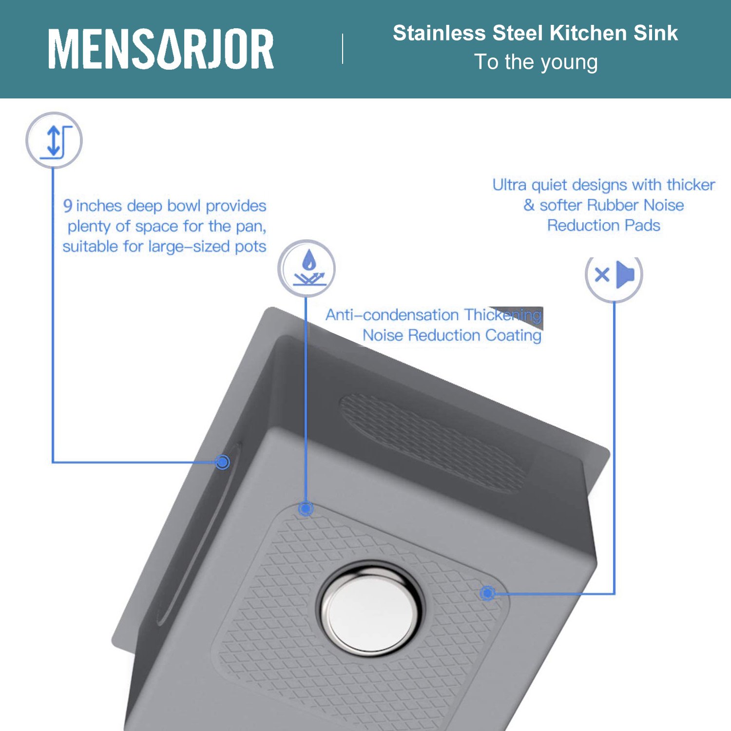 5.8.5 / 9.0 -inch deep single bowl undermount sink provides more space for soaking and washing dishes or larger items.