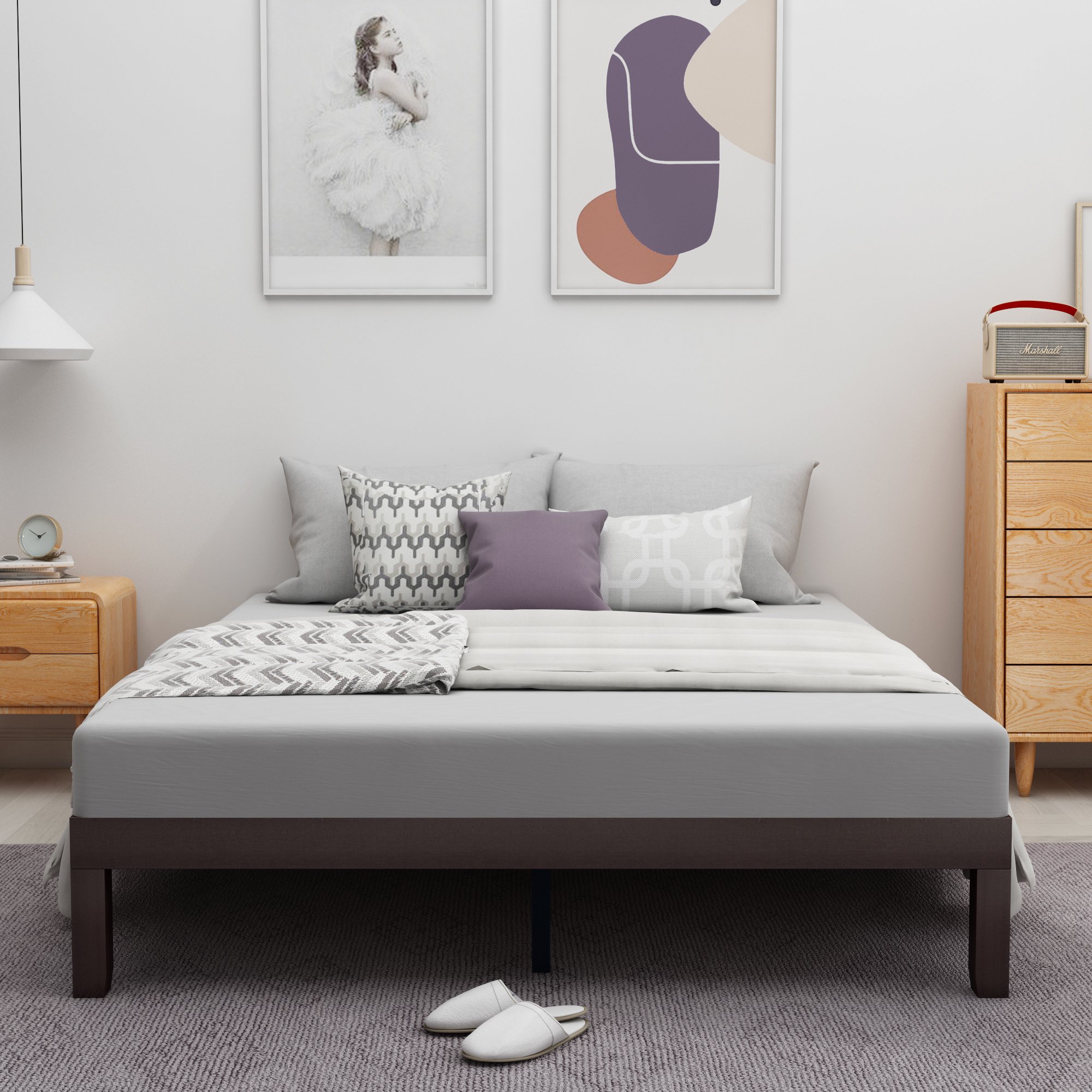 Durable Solid Wood Construction: This King size Platform Bed Frame is made with real solid wood for stability and durability