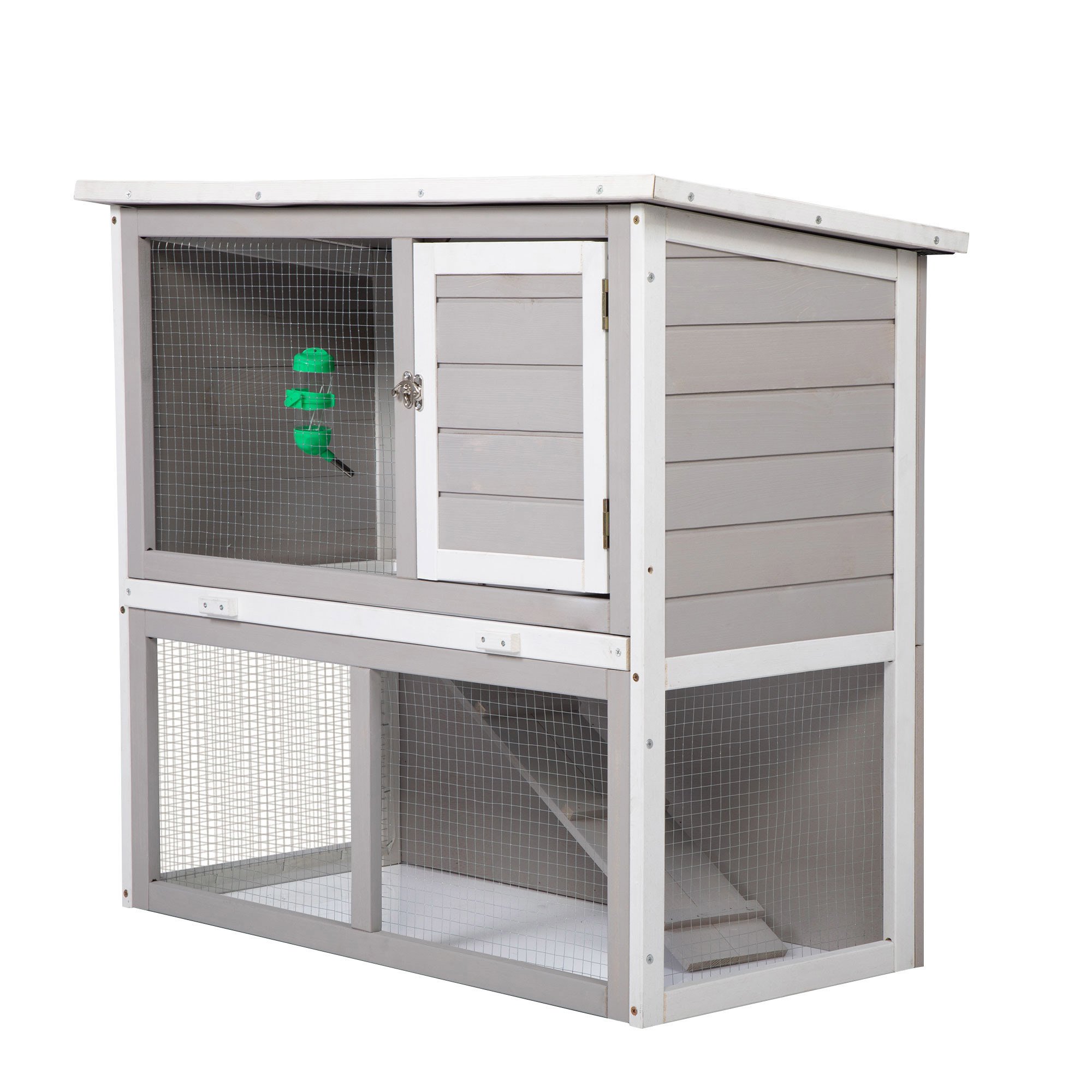 Home > Wooden Rabbit Hutch with Pull Out Tray, Weatherproof 2-Tier Bunny Run Cage, Outdoor Animal Enclosure for Multiple Pets