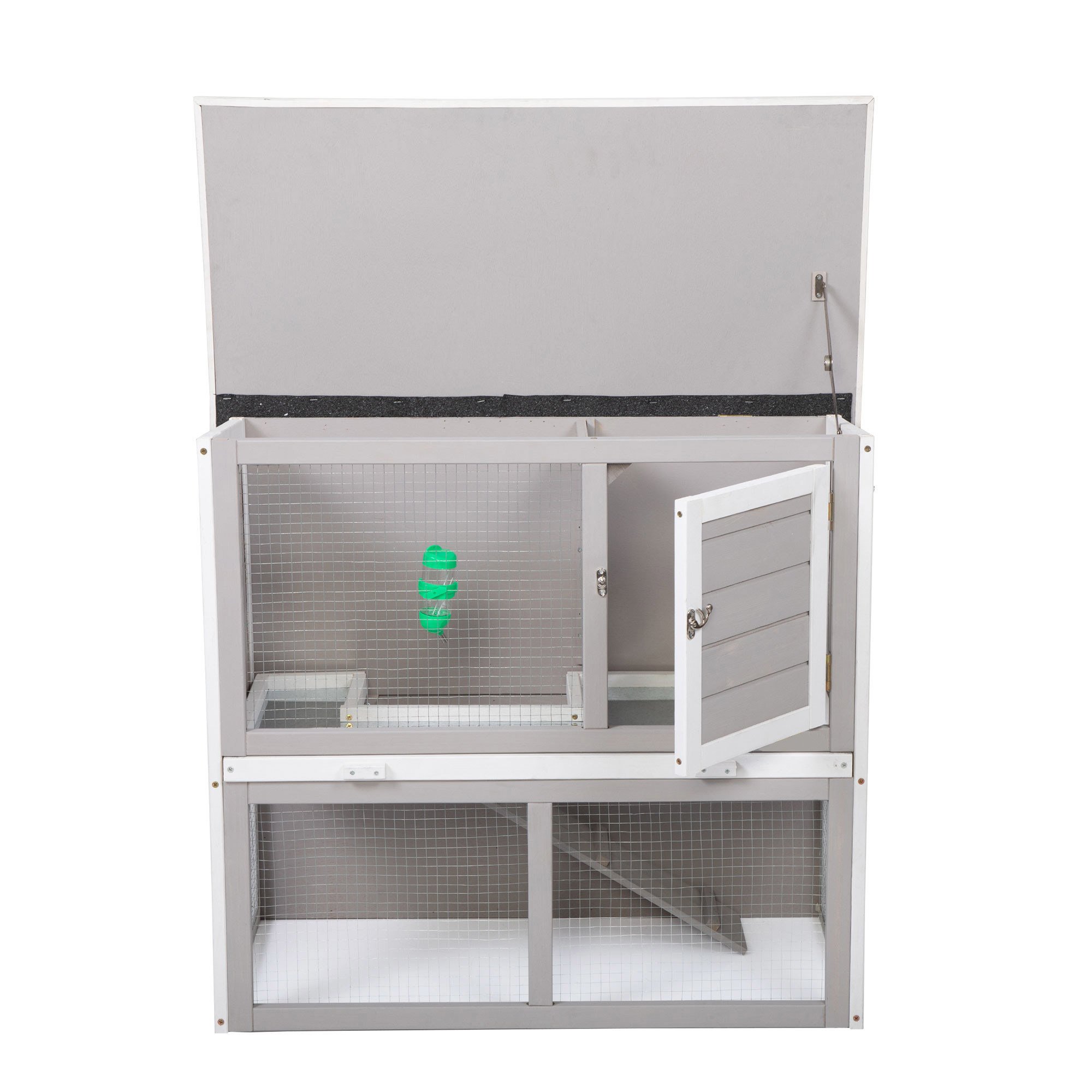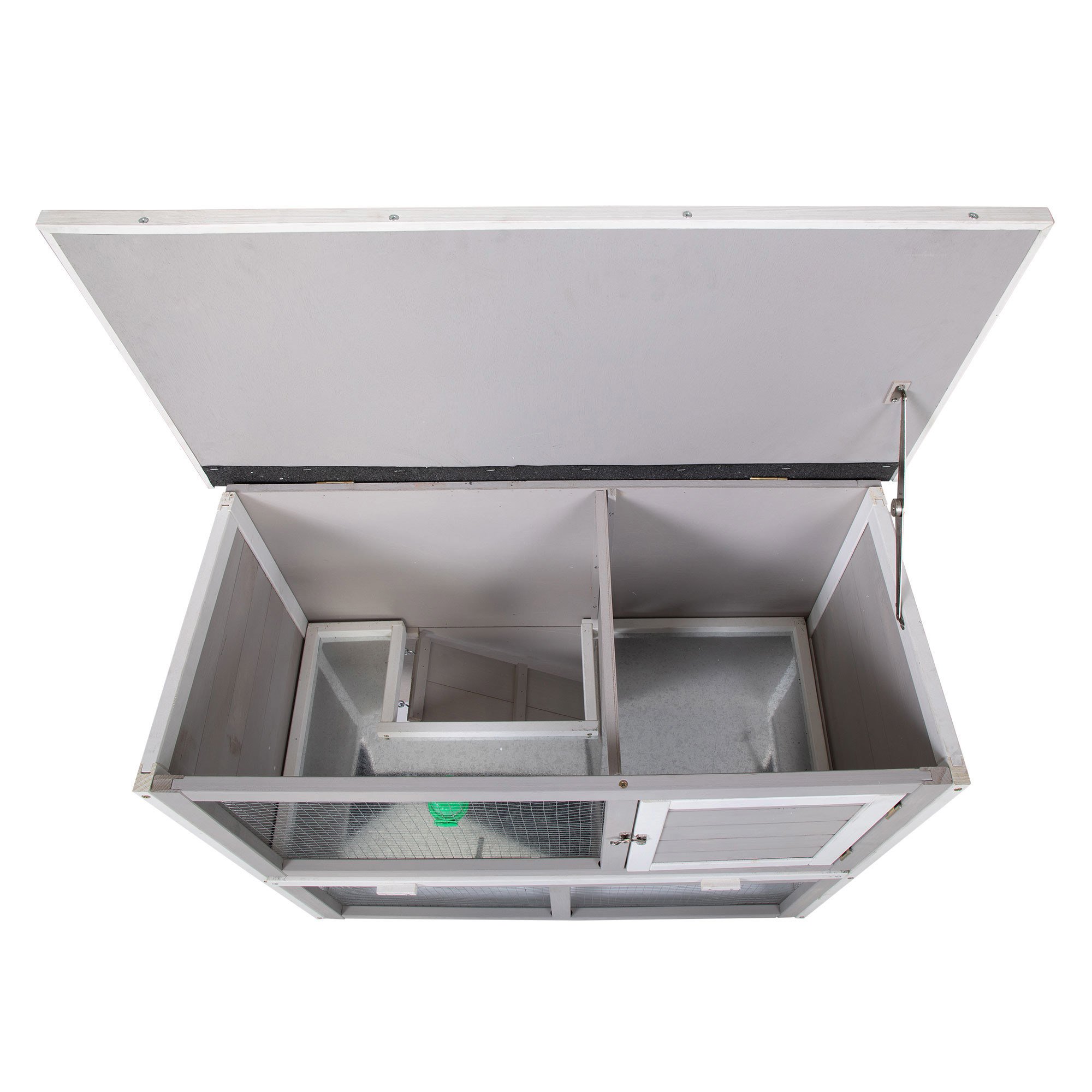 [Outdoor Rabbit Hutch]: This duplex hutch featuring an asphalt roof, a cozy retreat room, and ample roaming space combines ventilation with protection to create a comfy life.